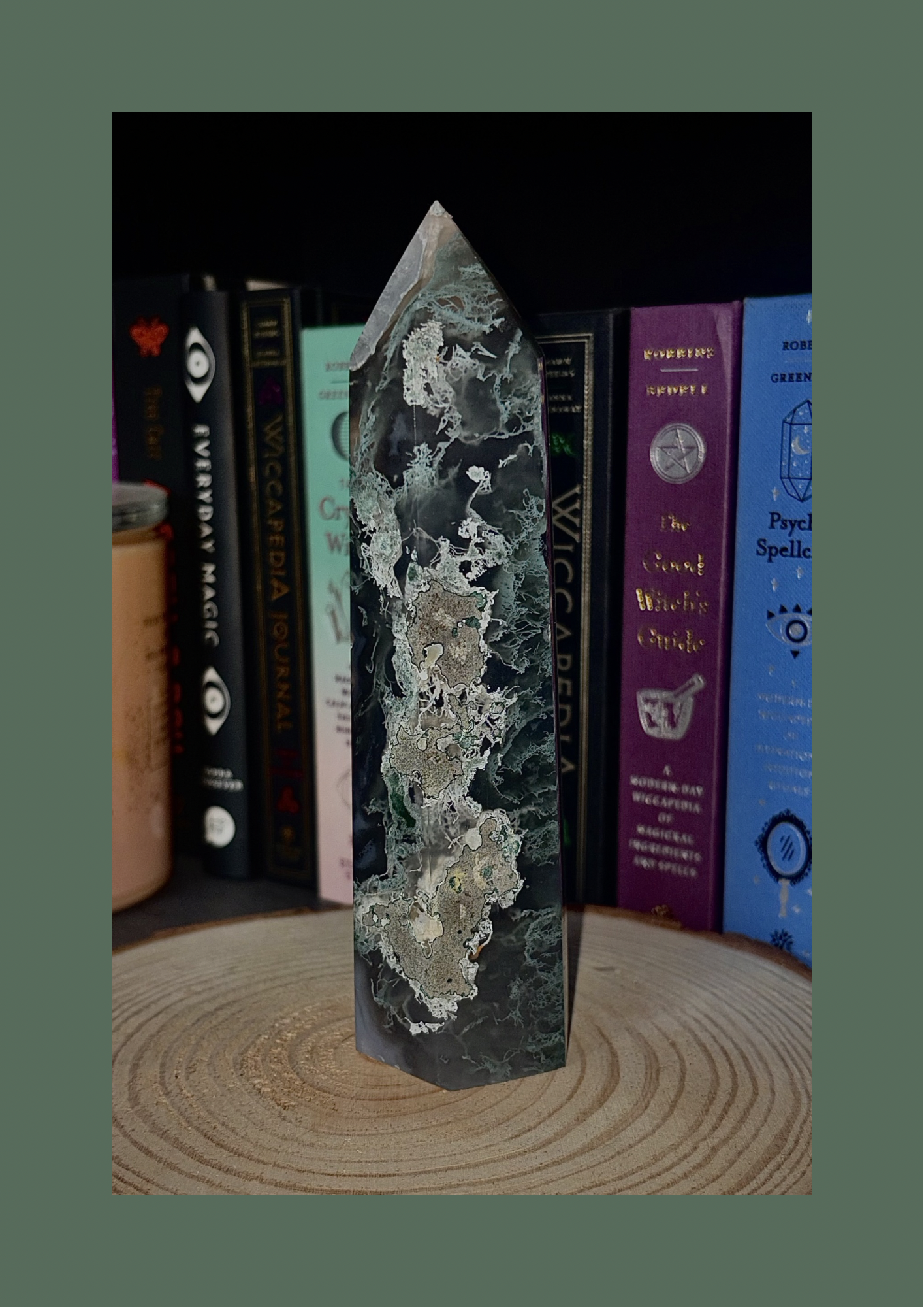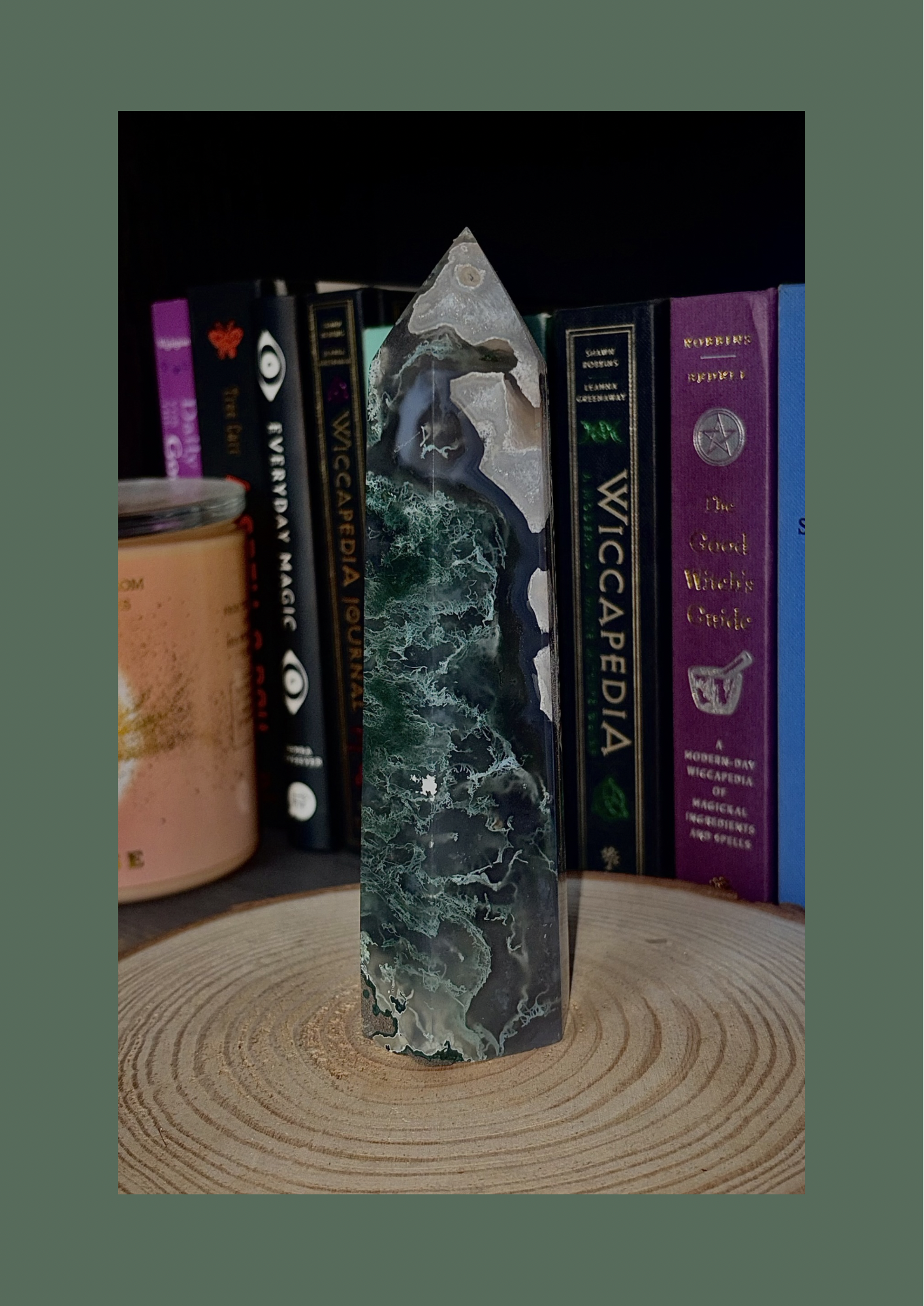 Each moss agate tower holds soft, green inclusions that resemble creeping moss, winding vines, and hidden forests — a quiet reminder of growth in all its forms. No two are ever the same, making each piece a small fragment of the earth’s own artistry.