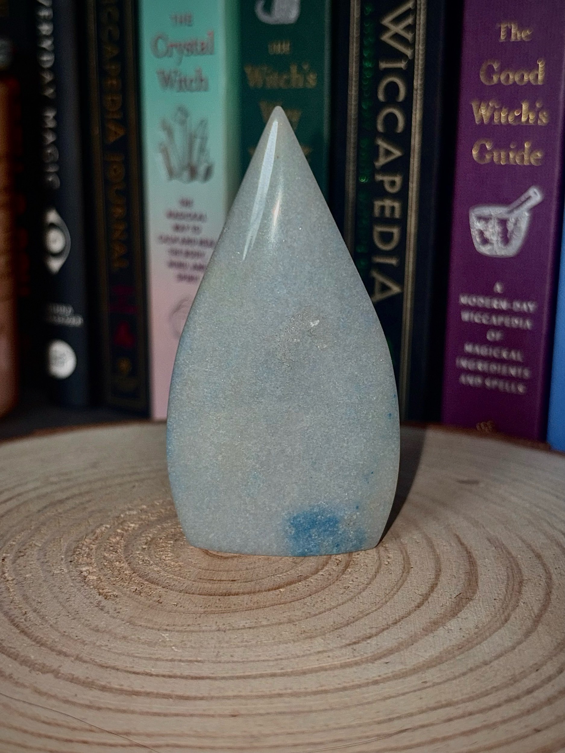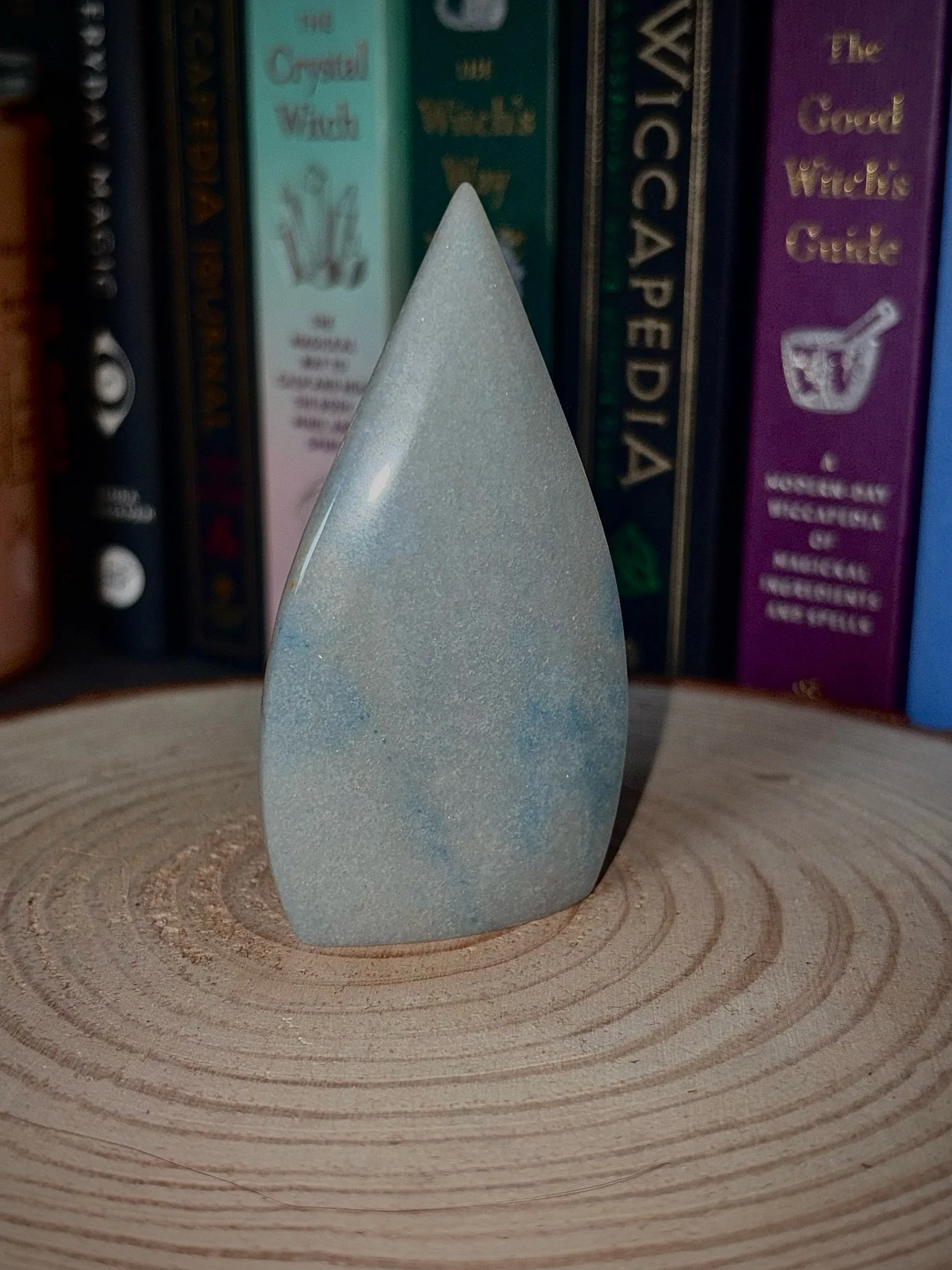 This angelite teardrop freeform carries soft, soothing blue tones — like a still sky just before dusk. Its smooth, flowing shape gives it a gentle, comforting presence, perfect for creating moments of peace within your space.